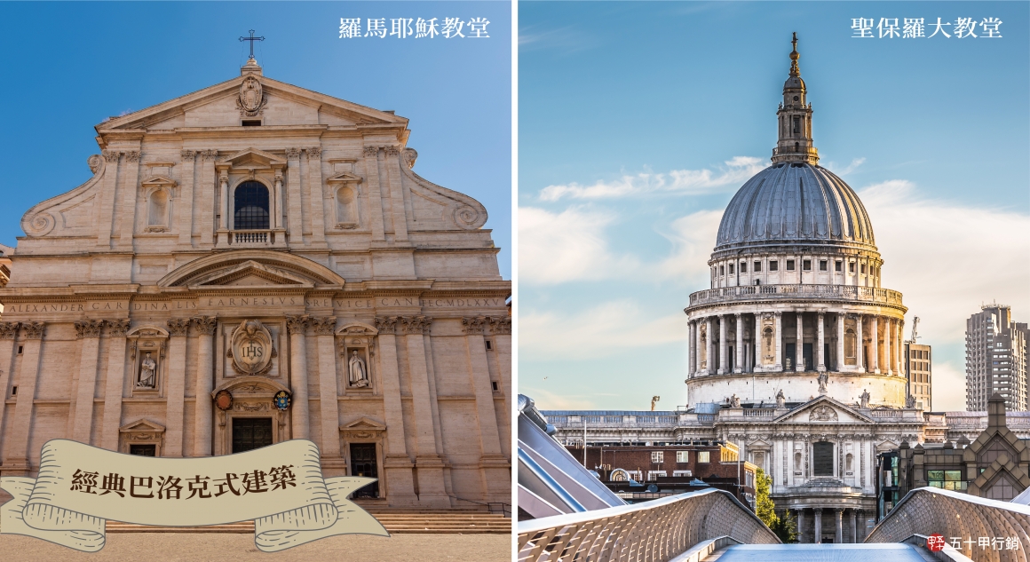 代表建築有羅馬耶穌教堂、聖保羅大教堂等,其特色為: